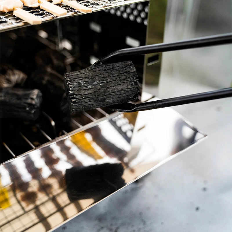 • Pinça de carbono com bico de pato: O design com bico de pato desses clipes de carbono permite um manuseio fácil e eficiente de carvão quente e carvão, tornando-os ideais para grelhar e fazer churrasco.